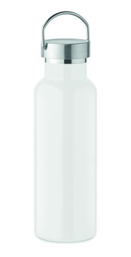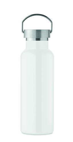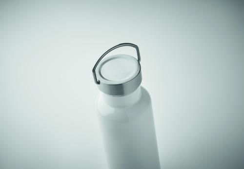 Double wall insulating vacuum bottle in recycled stainless steel (90 % recycled stainless steel and 10% stainless steel) with lid with handle. Capacity: 500 ml.