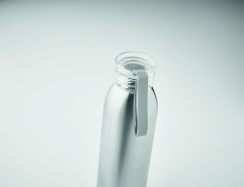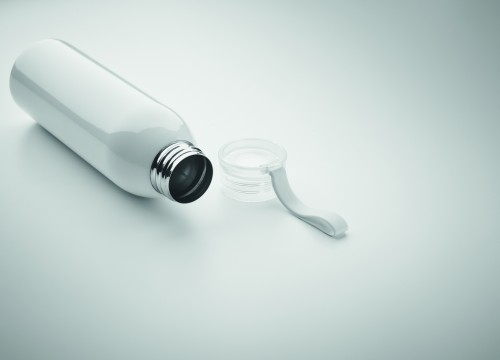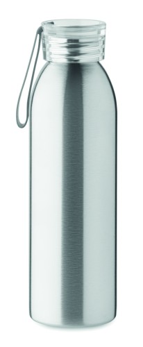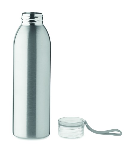 Single wall stainless steel bottle with PP lid and silicone hanger. Capacity: 650 ml. As this is a single walled bottle, heat transfer can still occur.
