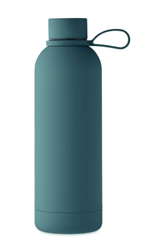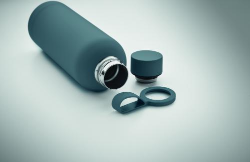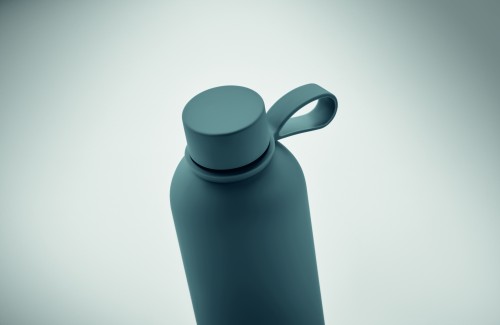 Double wall vacuum insulating bottle in recycled stainless steel (90% recycled stainless steel and 10% stainless steel) with rubber finish and silicone handle. Capacity: 500 ml.