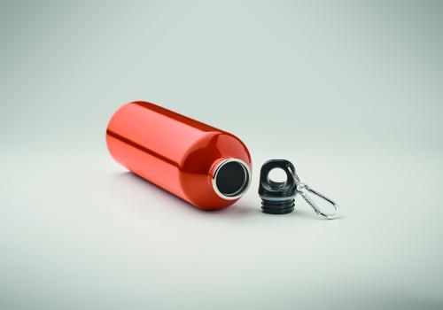 Single wall recycled stainless steel bottle (90% recycled stainless steel and 10% stainless steel) with carabiner. Capacity: 750 ml. The carabiner is not for climbing (non-professional use). Sublimation print available on white item only. Leak free. As this is a single walled bottle, heat transfer can still occur.