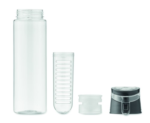 Water bottle in RPET with removable fruit infuser with carrying handle and leak proof lid. Capacity 500 ml.