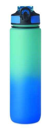 Sports water bottle in RPET with integrated straw, soft silicone mouth piece, motivational time markings, one hand opening flip top lid, safety lock and carrying strap. Capacity 1L.