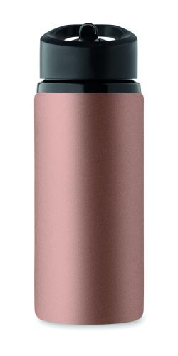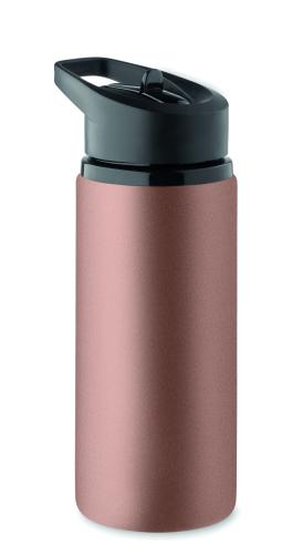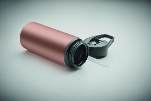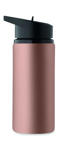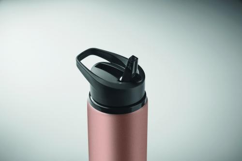 Recycled stainless steel (90% recycled stainless steel and 10% stainless steel) single wall bottle with foldable mouth piece, straw and lid with carrying handle. Capacity: 500 ml. As this is a single walled bottle, heat transfer can still occur.