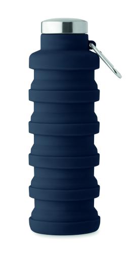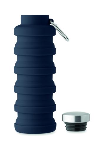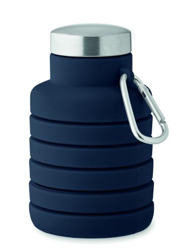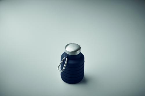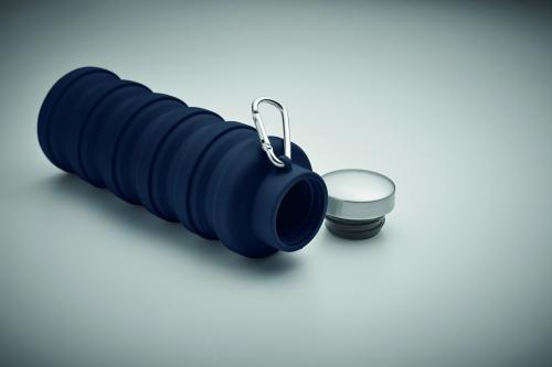 Collapsible silicone bottle with stainless steel lid and aluminium carabiner. The carabiner is not for climbing (non-professional use). Capacity: 500 ml.
