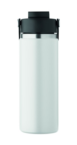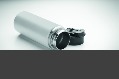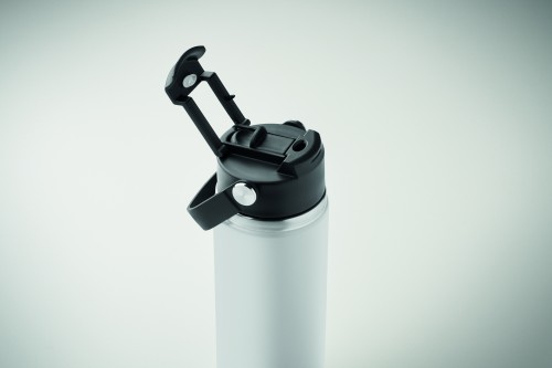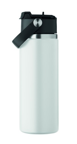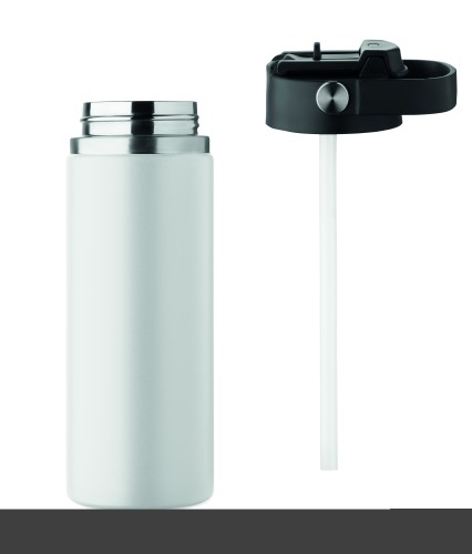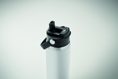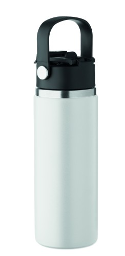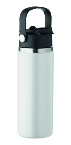 Double wall insulated bottle in recycled stainless steel (90% recycled stainless and 10% stainless steel) with combination straw and sip lid with handle. Leak free. Capacity : 500 ml.