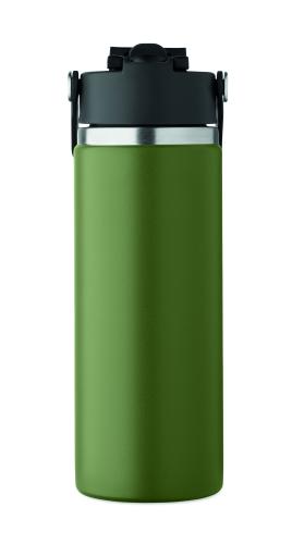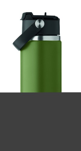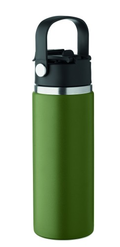 Double wall insulated bottle in recycled stainless steel (90% recycled stainless and 10% stainless steel) with combination straw and sip lid with handle. Leak free. Capacity : 500 ml.