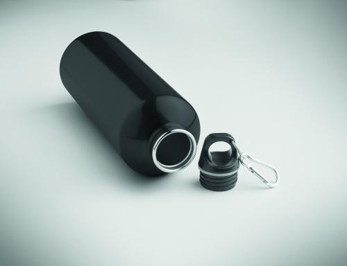 Single wall bottle (90% recycled stainless steel and 10% stainless steel) with a PP lid and carabiner. Capacity 1000 ml. As this is a single wall bottle, heat transfer can still occur.