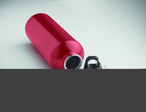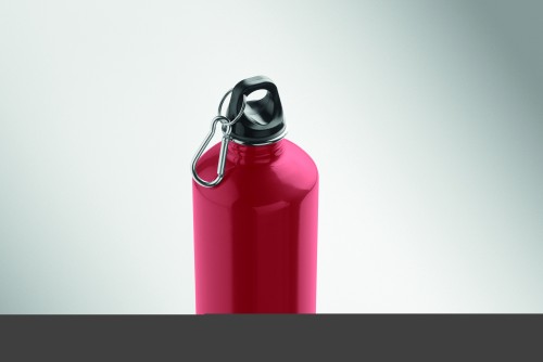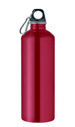 Single wall bottle (90% recycled stainless steel and 10% stainless steel) with a PP lid and carabiner. Capacity 1000 ml. As this is a single wall bottle, heat transfer can still occur.
