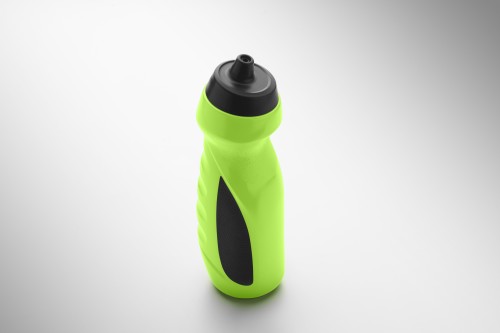 Sports bottle with convenient handgrip in solid PE plastic. Capacity: 700 ml. Leak free.