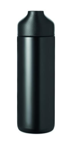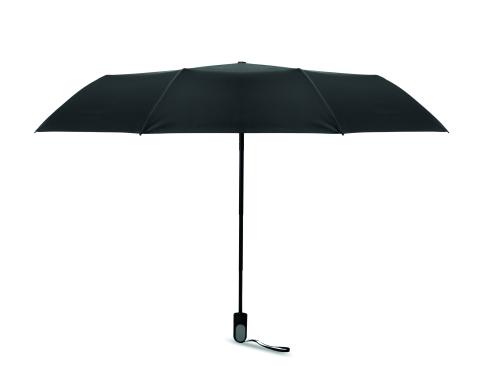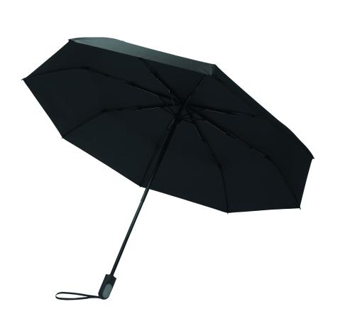 "2-piece gift set with 600 ml double wall recycled stainless steel bottle with PP lid, metal detail, and silicone handle, plus 21"" foldable windproof pongee umbrella with ABS handle in gift box."