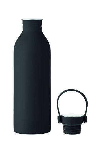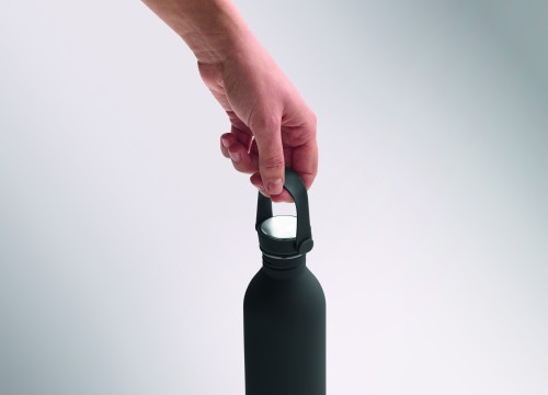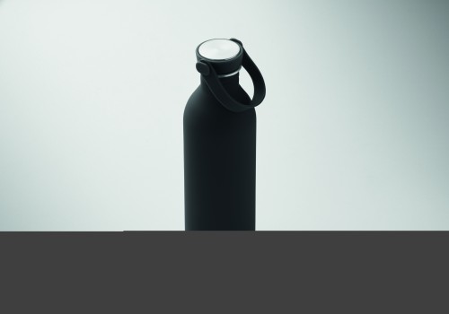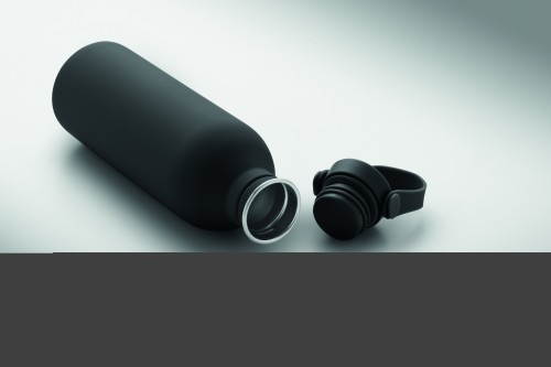 Single wall bottle made of 90 % recycled stainless steel and 10% stainless steel with rubber finish. Includes PP and SS lid with silicone handle. Capacity: 500 ml.