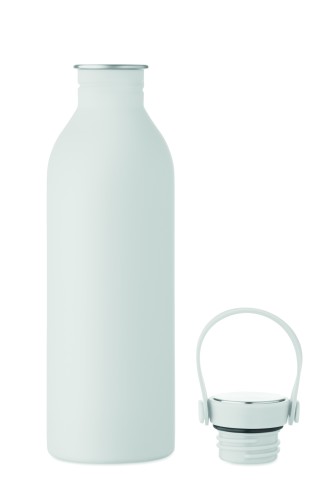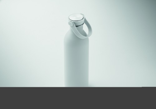 Single wall bottle made of 90 % recycled stainless steel and 10% stainless steel with rubber finish. Includes PP and SS lid with silicone handle. Capacity: 500 ml.