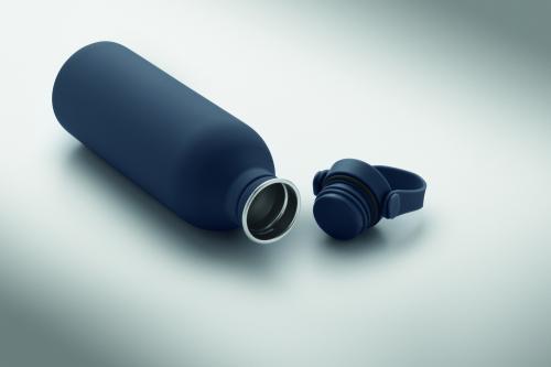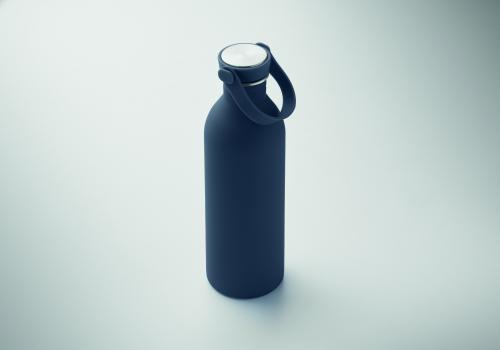 Single wall bottle made of 90 % recycled stainless steel and 10% stainless steel with rubber finish. Includes PP and SS lid with silicone handle. Capacity: 500 ml.