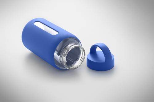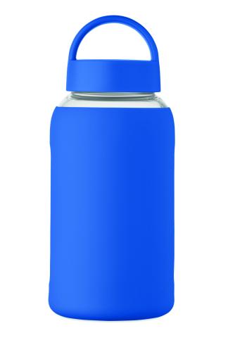 High borosilicate glass bottle with silicone pouch and PP lid with handle. Capacity: 600 ml