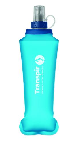 Foldable TPU water bottle with bite valve. Lightweight and portable design, ideal for outdoor use. Leak-free. Capacity 500 ml.