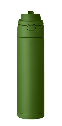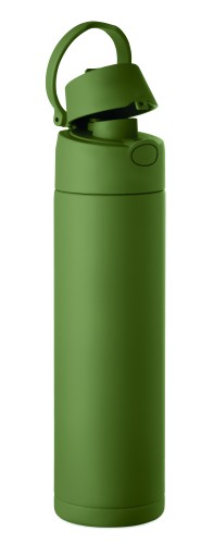 Double wall insulated recycled stainless steel (90% recycled stainless and 10% stainless steel) bottle. Features 2-in-1 straw and sip PP lid with handle. Leak-free. Capacity: 500 ml.