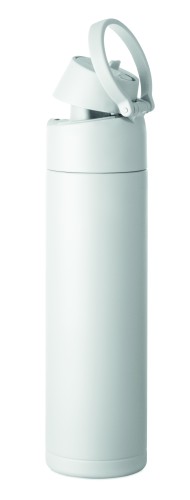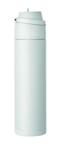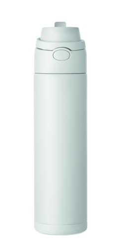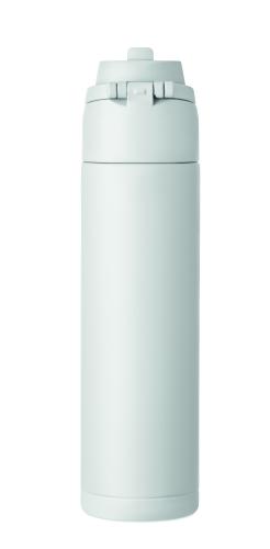 Single wall recycled stainless steel (90% recycled stainless and 10% stainless steel) bottle. Features 2-in-1 straw and sip PP lid with handle. Leak-free. Capacity: 650 ml.