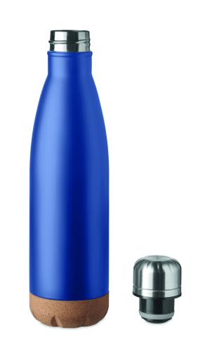 Double wall stainless steel vacuum bottle with cork base detail. Capacity: 500 ml. Leak free. Cork is 100% natural material. Due to its structural nature and surface porosity the final print result per item may have deviations.