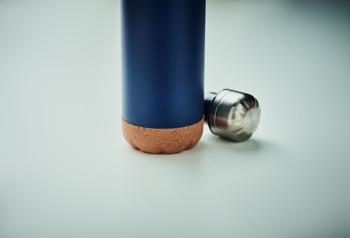 Double wall stainless steel vacuum bottle with cork base detail. Capacity: 500 ml. Leak free. Cork is 100% natural material. Due to its structural nature and surface porosity the final print result per item may have deviations.
