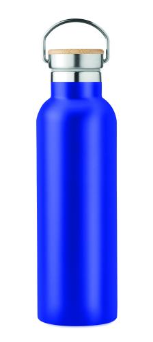 Double wall Stainless Steel insulating vacuum flask with bamboo lid and carry handle. Capacity: 750 ml. Leak free. Bamboo is a natural product, there may be slight variations in colour and size per item, which can affect the final decoration outcome.