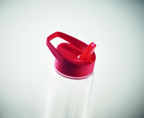 Drinking bottle in RPET and PP flip-top lid with straw. Capacity: 650ml. Not suitable for carbonated drinks.
