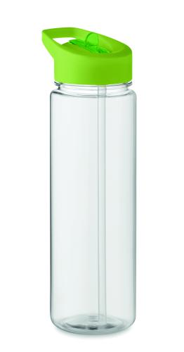 Drinking bottle in RPET and PP flip-top lid with straw. Capacity: 650ml. Not suitable for carbonated drinks.