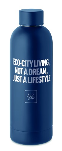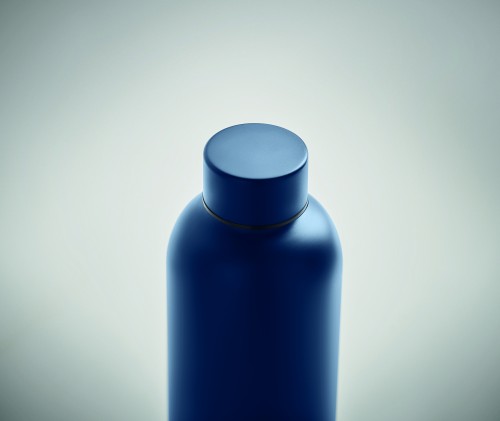 Double wall insulating vacuum bottle in recycled stainless steel (90% recycled stainless steel and 10% stainless steel). Capacity 500 ml. Leak free.