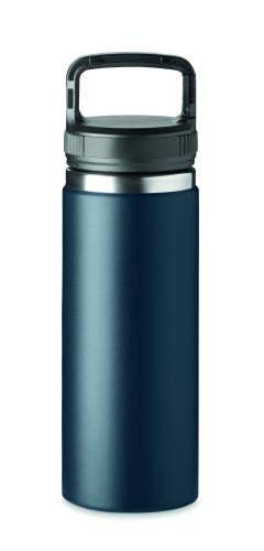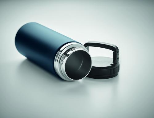 Double wall stainless steel vacuum insulated bottle with hook hanger on lid. Capacity : 500 ml.