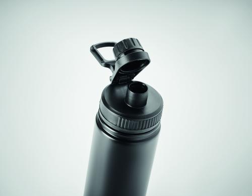 Double wall stainless steel vacuum insulated bottle with sip cap on lid and carry handle. Capacity: 500 ml.