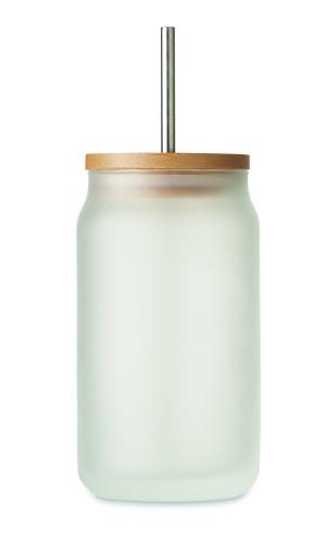 Mason cocktail jar with special coating for sublimation with bamboo lid. Including a Stainless Steel straw. Capacity:400 ml. Bamboo is a natural product, there may be slight variations in colour and size per item, which can affect the final decoration outcome.