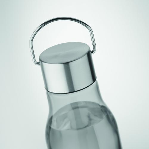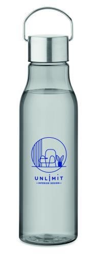 Drinking bottle in RPET which is BPA free and stainless steel cap with lid handle. Leak free. Capacity: 600 ml.