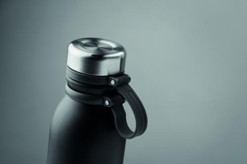 Double wall stainless steel powder coated flask with silicone grip for easy carry. Leak free. Capacity: 600 ml. Leak free.