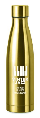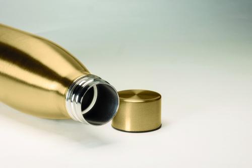 Double wall stainless steel with copper insulating vacuum bottle. Capacity 500 ml. Leak free.