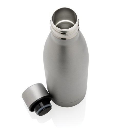 This RCS Recycled stainless steel vacuum bottle is designed for long-lasting enjoyment of your drinks! The double-wall recycled stainless steel vacuum construction keeps beverages chilled for up to15 hours or warm for up to 5 hours. This bottle fits most standard car cup holders so you can bring it with you anywhere. Made with RCS (Recycled Claim Standard) certified recycled materials. RCS certification ensures a completely certified supply chain of the recycled materials. Total recycled content: 93% based on total item weight. BPA free. Capacity 500ml. Including FSC®-certified kraft packaging.
