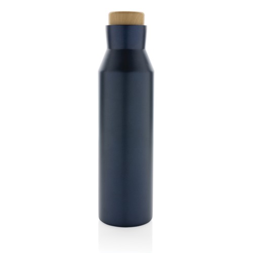 Quench your thirst anywhere you go with the Gaia leakproof vacuum bottle. Crafted from recycled stainless steel with a leakproof PP woodlook lid, this 600ml bottle keeps your beverages 5 hours warm and 15 hours cold. With a smooth finish, this vacuum bottle is a must-have in your drinkware collection. BPA free. Made with RCS (Recycled Claim Standard) certified recycled materials. RCS certification ensures a completely certified supply chain of the recycled materials. Total recycled content: 88% based on total item weight.