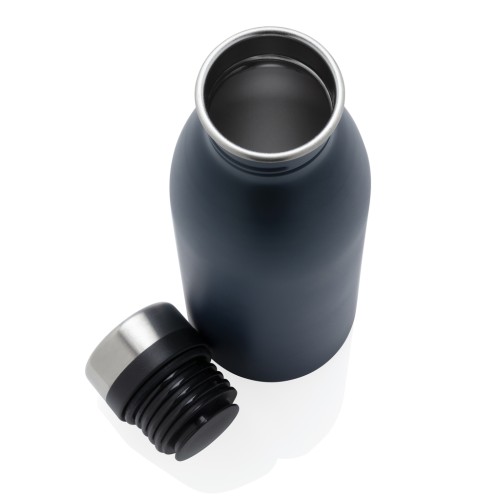 This perfect size and lightweight reusable bottle is made from 18/8 durable recycled stainless steel. Leakproof and perfect for everyday carrying and hydration. Recommended for cold water only. Made with RCS (Recycled Claim Standard) certified recycled materials. RCS certification ensures a completely certified supply chain of the recycled materials. Total recycled content: 80% based on total item weight. BPA free. Capacity 500ml. Including FSC®-certified kraft packaging.
