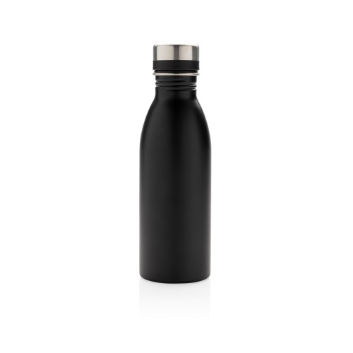 This perfect size and lightweight reusable bottle is made from 18/8 durable recycled stainless steel. Leakproof and perfect for everyday carrying and hydration. Recommended for cold water only. Made with RCS (Recycled Claim Standard) certified recycled materials. RCS certification ensures a completely certified supply chain of the recycled materials. Total recycled content: 80% based on total item weight. BPA free. Capacity 500ml. Including FSC®-certified kraft packaging.