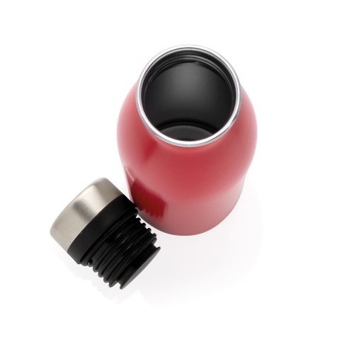 This perfect size and lightweight reusable bottle is made from 18/8 durable recycled stainless steel. Leakproof and perfect for everyday carrying and hydration. Recommended for cold water only. Made with RCS (Recycled Claim Standard) certified recycled materials. RCS certification ensures a completely certified supply chain of the recycled materials. Total recycled content: 80% based on total item weight. BPA free. Capacity 500ml. Including FSC®-certified kraft packaging.