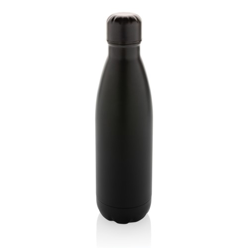 Elevate your daily water intake with this single wall stainless steel bottle. The bottle is suitable for cold drinks only. With a base that fits in most cup holders, this sleek looking water bottle will keep you hydrated on the go wherever you are. Made with RCS (Recycled Claim Standard) certified recycled materials. RCS certification ensures a completely certified supply chain of the recycled materials. Total recycled content: 84% based on total item weight. BPA free. Capacity 500ml. Including FSC®-certified kraft packaging.