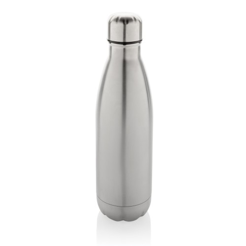 Elevate your daily water intake with this single wall stainless steel bottle. The bottle is suitable for cold drinks only. With a base that fits in most cup holders, this sleek looking water bottle will keep you hydrated on the go wherever you are. Made with RCS (Recycled Claim Standard) certified recycled materials. RCS certification ensures a completely certified supply chain of the recycled materials. Total recycled content: 84% based on total item weight. BPA free. Capacity 500ml. Including FSC®-certified kraft packaging.