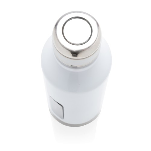 Leakproof vacuum insulated bottle with twist off lid. With unique logo position on the front. 304 stainless steel inner and 201 stainless steel outer keeps your drinks hot 5h and cold 15h. Content: 500ml.
