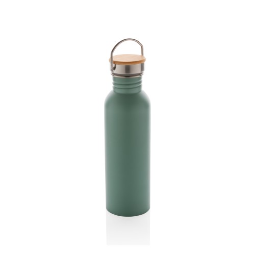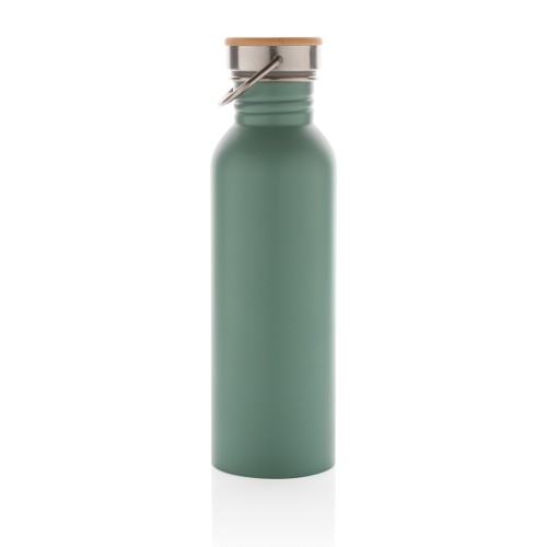 A drinking bottle that is beautiful through its simplicity. This modern single wall stainless steel bottle features a stainless steel lid finished with a beautiful piece of bamboo. With a stainless steel handle for easy carrying. Capacity 710ml. BPA free. Handwash only.