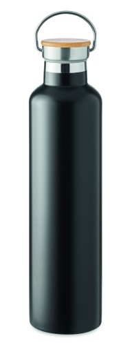 Duplafalú rozsdamentes acél palack, 500 ml, fekete
