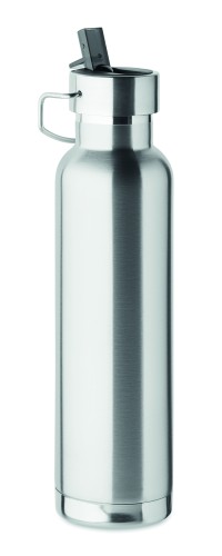 Duplafalú újraacél palack, 600 ml, fekete
