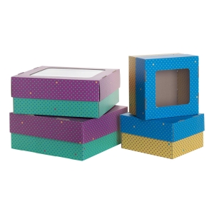 | Termék leírás | Egyedi, színes nyomtatott hullámkarton doboz tető-alj, ablakkal. A terméket lapra szerelve szállítjuk. Minimális rendelési mennyiség: 50 db. |