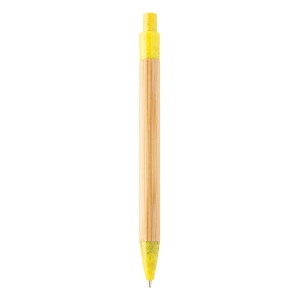 Bambusz golyóstoll környezetbarát búzaszalma műanyag klipsszel és nyomógombbal. Kék tollbetéttel szállítjuk.
