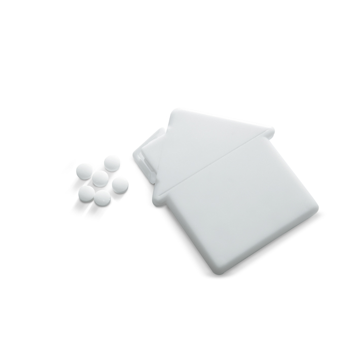 Házikó alakú mentolos cukorka adagoló. 8 g cukorral.