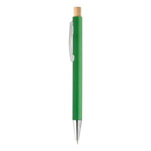 | Termék leírás | Újrahasznosított ABS műanyag golyóstoll bambusz gombbal és fém klipsszel. Kék tollbetéttel. |
