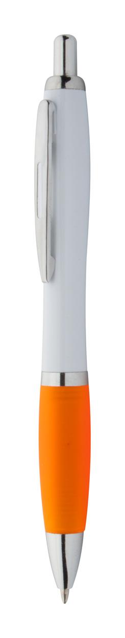 | Termék leírás | Újrahasznosított ABS műanyag golyóstoll fehér testtel, színes markolattal és króm részekkel. Kék tollbetéttel. |