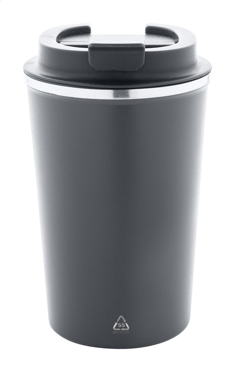 | Termék leírás | Duplafalú, újrahasznosított rozsdamentes acélból készült hőszigetelt thermo pohár, PP ivófedéllel. 350 ml. |